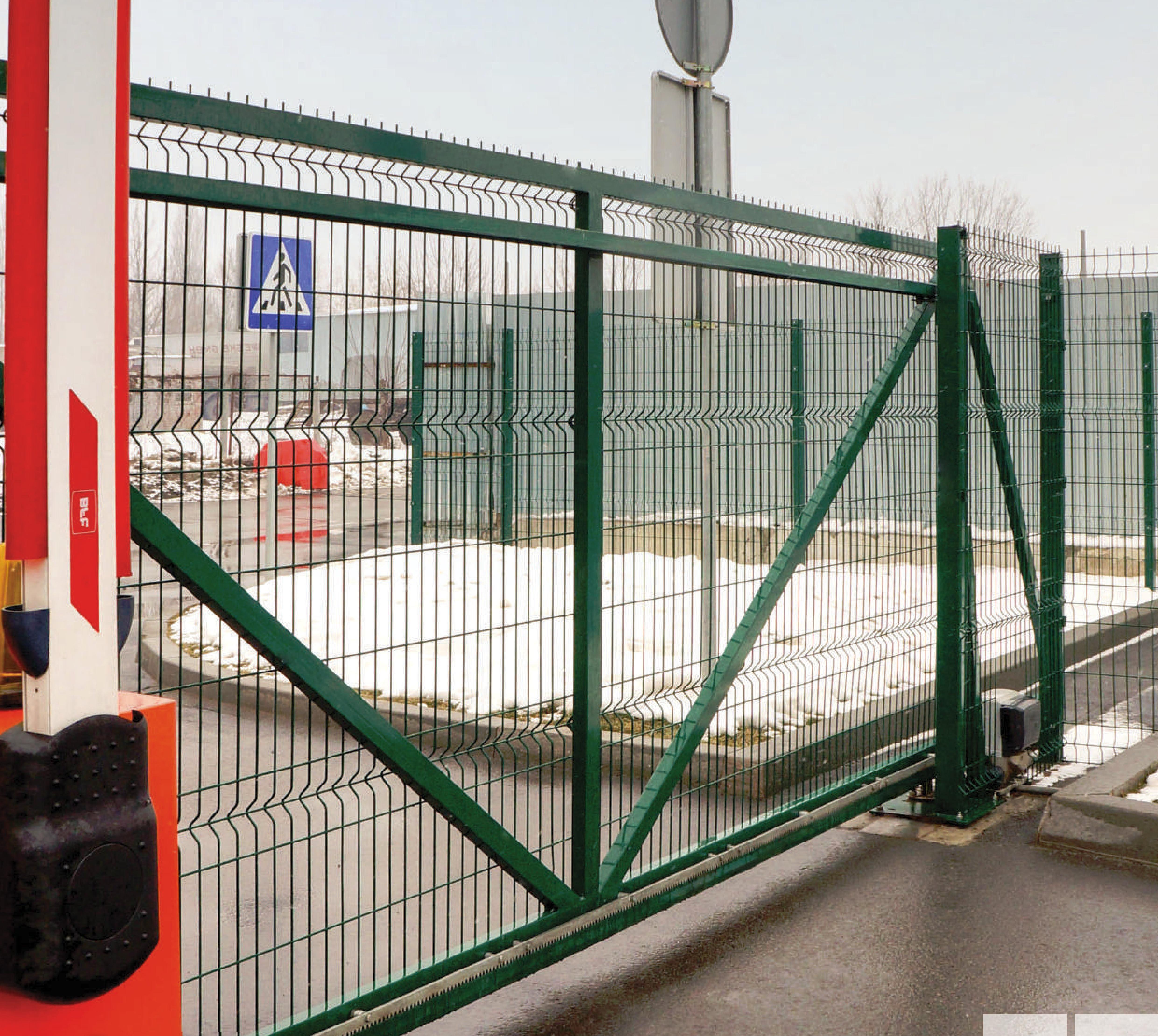 Столбы выполнены из квадратной оцинкованной трубы с приваренным основанием. В зависимости от ширины проема ворот столбы выполняются одиночными или П-образной формы. На столбах предусмотрены крепления улавливающих и направляющих роликов.